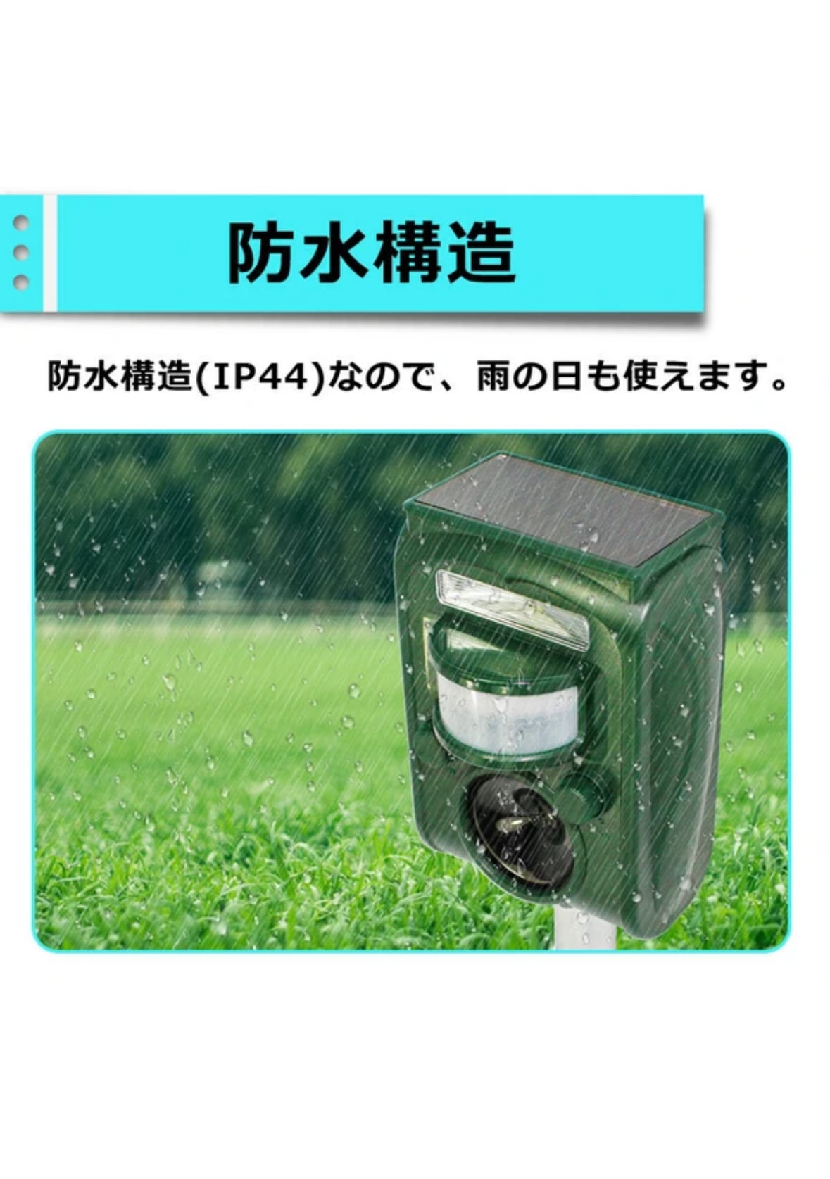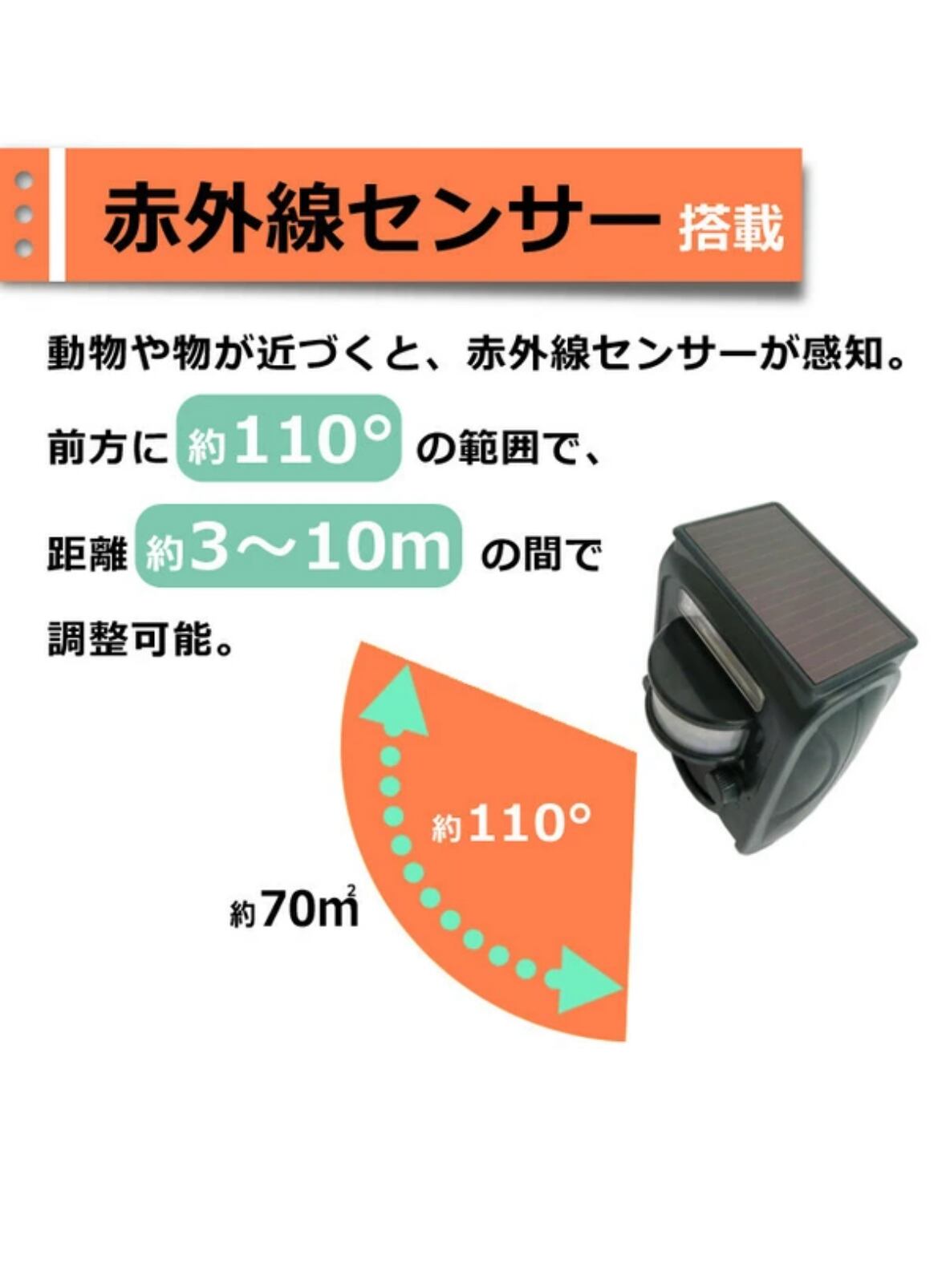 動物が赤外線センサーに感知されると超音波やLEDライトなどで撃退!