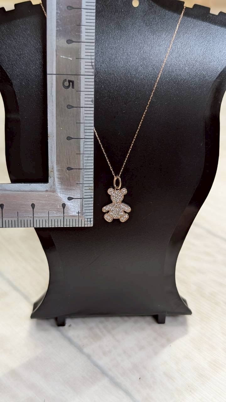 新品★K18PG 天然ダイヤモンド 0.22ct ベア ネックレス 18金 ピンクゴールド 熊 テディベア