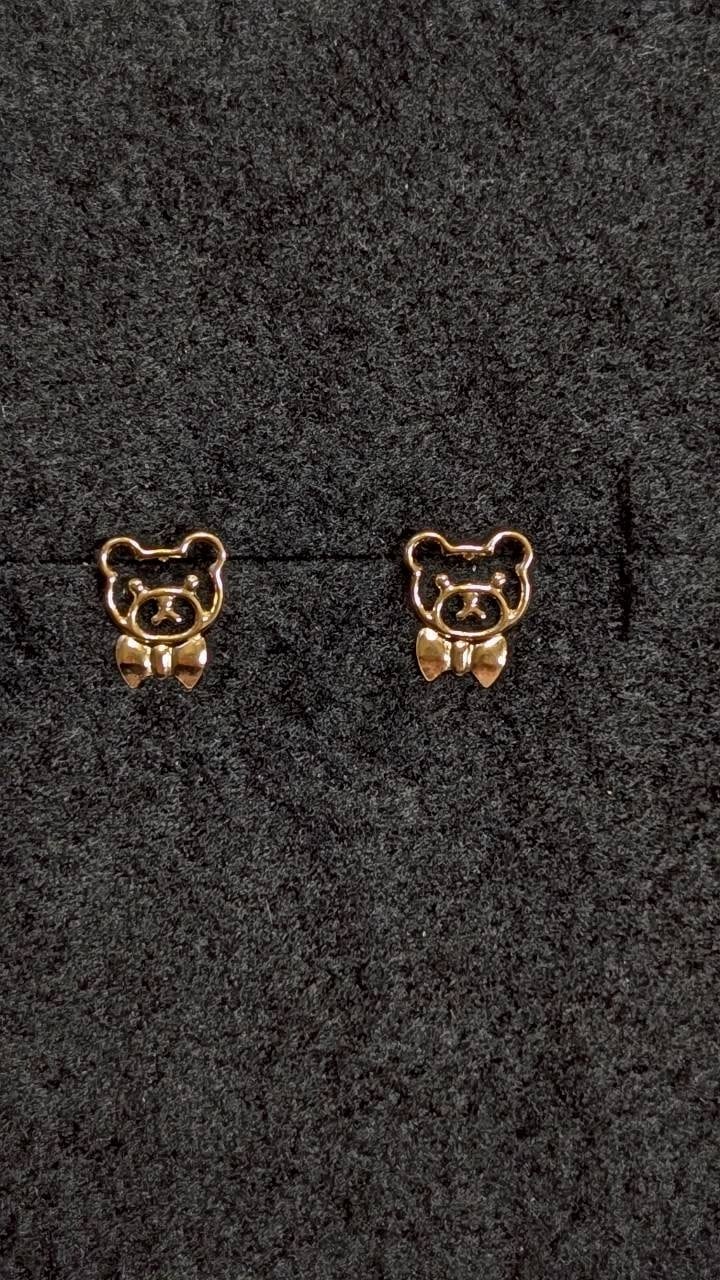 K10 YG 可愛い クマのピアス|10金 イエローゴールド|幸運を運ぶベアモチーフ